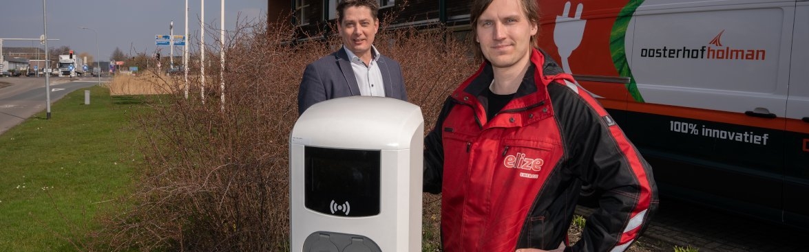Met de verdere elektrificatie van het wagenpark moest ook de laadpaalinfrastructuur worden uitgebreid. Een uitdaging hierbij was dat ook de bedrijfspanden van Oosterhof Holman en Elize elk jaar verder worden verduurzaamd. De panden krijgen hun energie onder andere via een zonnepanelensysteem. Ruben Wijngaard: “Als we ’s ochtends allemaal instekkerden, was er voor de rest van de bedrijfsvoering geen energie meer. Daar moest een oplossing voor komen.” Ruben besprak dit vraagstuk met Manfred en in overleg met Jeroen is er gekozen voor Dynamic Load Balancing. Jeroen Veen: “Samen met Elize hebben we de behoefte inzichtelijk gemaakt. We zijn begonnen bij het hoofdkantoor en hebben vervolgens ook andere vestigingen meegenomen. Per situatie hebben we gekeken wat het beste past. Hierbij is ook de situatie bij de medewerkers thuis meegenomen omdat Elize daar ook laadpalen plaatst, vaak in combinatie met zonnepanelen. De focus lag op het efficiënt omgaan met de energiebehoefte en een toekomstbestendige oplossing. Ik heb een advies geschreven en samen met onze vestiging in Groningen een calculatie gemaakt en vertaald naar een offerte.”