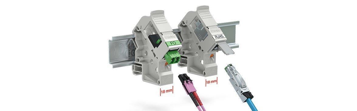 Versies met RJ45, SC simplex, LC duplex en MTP-aansluitingen zijn beschikbaar voor hoogwaardige datatransmissie met koper- en glasvezelkabels. Naast nieuwe functies zoals de aan de voorkant schakelbare afschermingsaansluiting en nieuwe markeringsopties, biedt de DIN-rail adapter extra veiligheidsaccessoires om ongeoorloofd inpluggen of loskoppelen van de RJ45 interface te voorkomen.